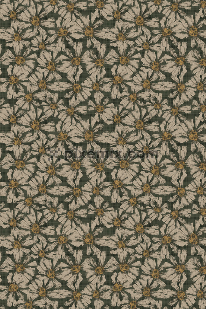 Vintage floral art and checks product graphic with seamless repeat pattern