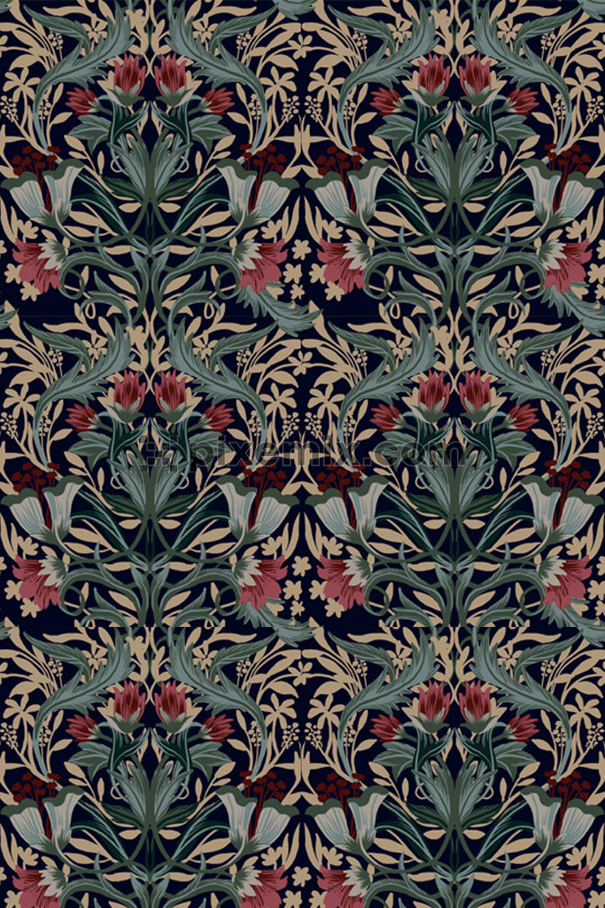 Vintage style ornamented floral vector product graphic with seamless repeat pattern