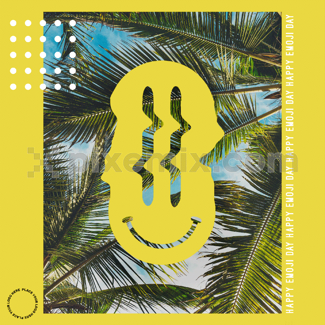 Distorted happy emoji with palm tree image social media GIF post