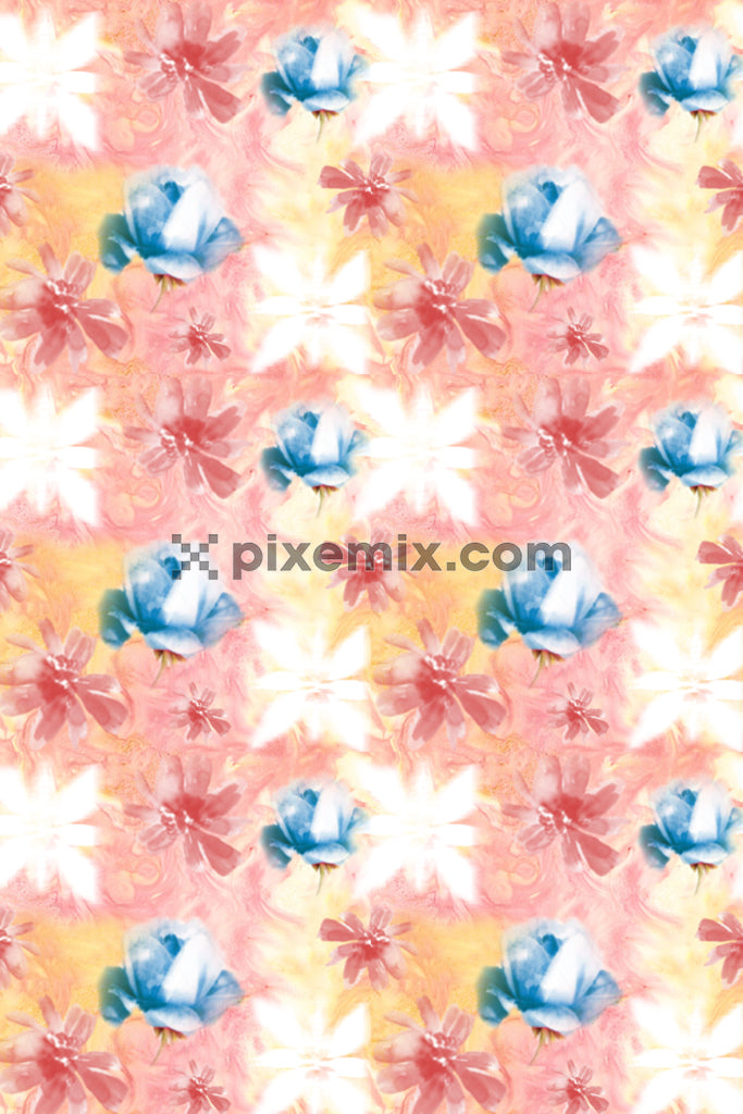 Watercolor florals product graphic with seamless repeat pattern