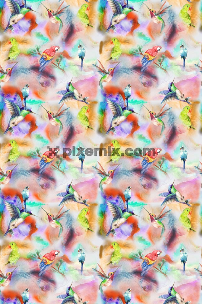 Digital bird and splash effect product graphic with seamless repeat pattern