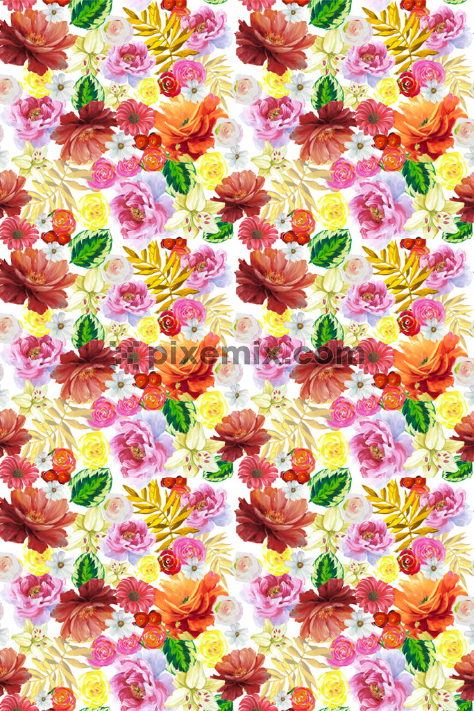 Watercolor florals and leaf product graphic with seamless repeat pattern