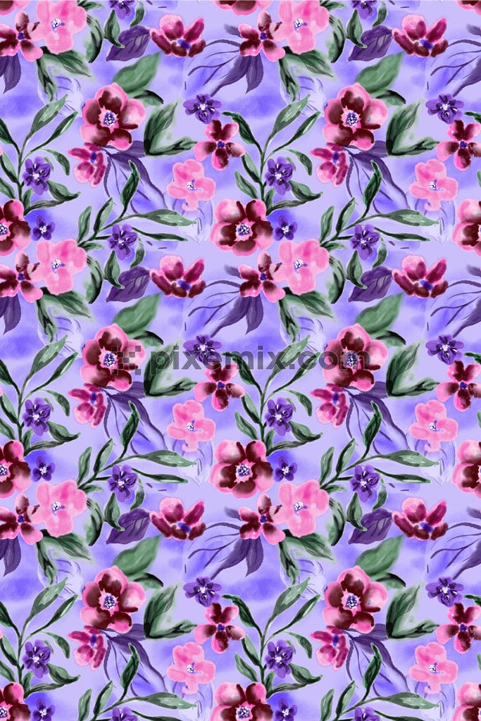 Watercolor florals and leaves product graphic with seamless repeat pattern