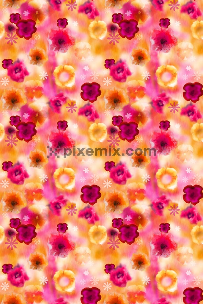 Watercolor florals product graphic with seamless repeat pattern