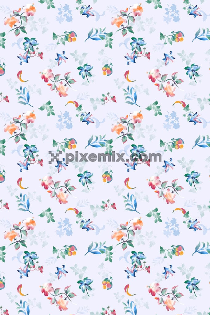 Watercolor florals and leaves product graphic with seamless repeat pattern