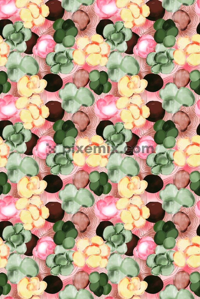 Watercolor florals and abstract line product graphic with seamless repeat pattern