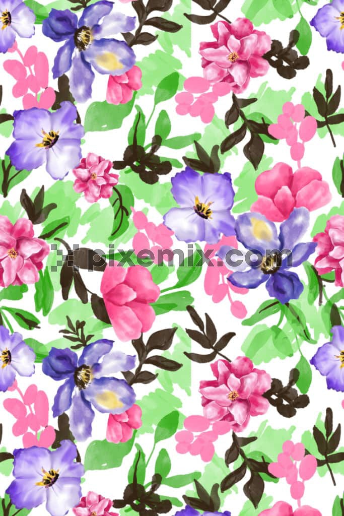 Watercolor florals and leaves product graphic with seamless repeat pattern