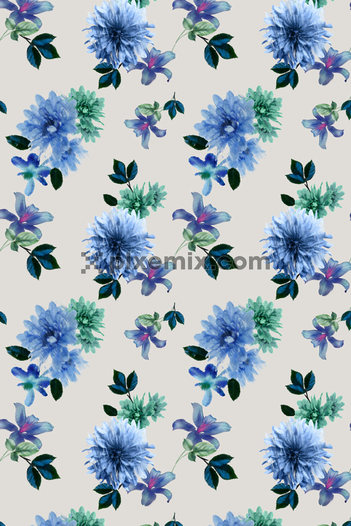 Watercolor florals and leaf product graphic with seamless repeat pattern