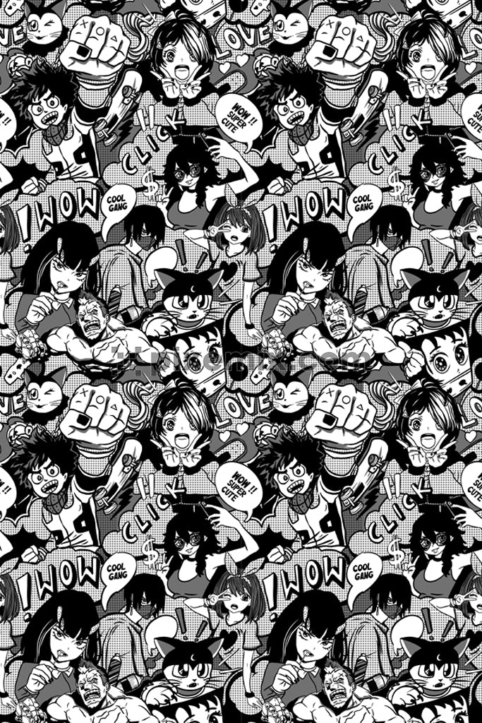 Doodle art inspried comic character and typography product graphics with seamless repeat pattern