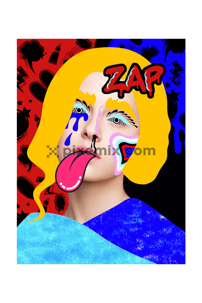 Comic pop art inspired girl face with photo-manipulation vector product graphic